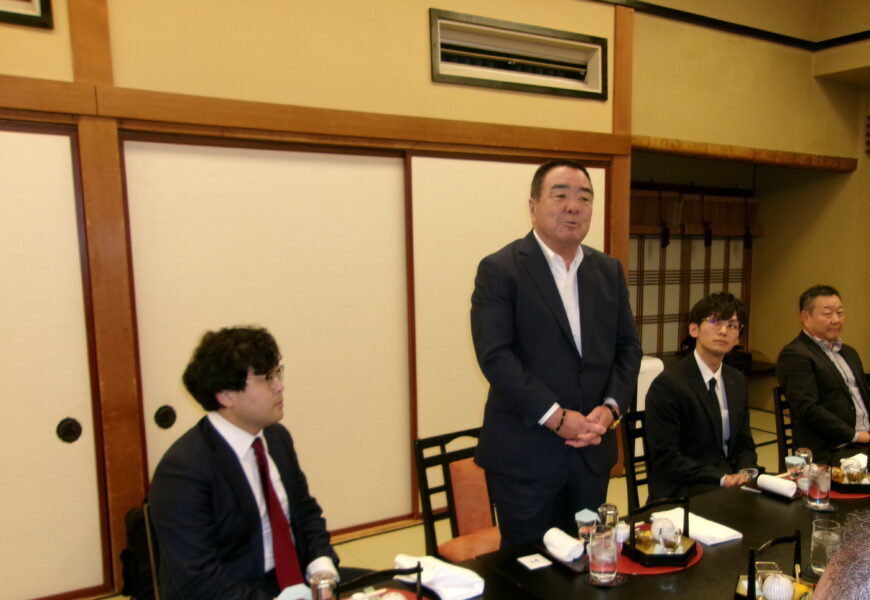 ご多忙のなか、当組合の忘年会にご足労いただきましたお取引先の皆様に、重ねて御礼申し上げます。来年も、皆様とこのようにお集まりできることを楽しみにしております。